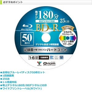 山善(YAMAZEN)1回録画用 BD-R 片面1層 1-4倍速 50枚 25GBキュリオム BD-R50SP 仕様 ●原産国:中国 商品説明 ●お得なブルーレイディスク50枚セット●1回録画用●25GB●1-4倍速対応●地上デジタル180分/BSデジタル130分●ワイドプリントレーベル(ホワイト) 商品補足説明 YAMAZEN ヤマゼン 山善 通販 blu-ray BD-R 録画 BSデジタル 地上デジタル 記録 ブルーレイ ディスク 4倍速 ディスク ブルーレイディスク 50枚 録画用 25GB スピンドルAV機器 ランキング